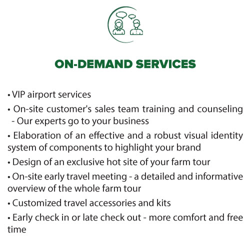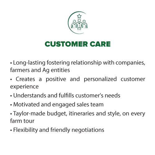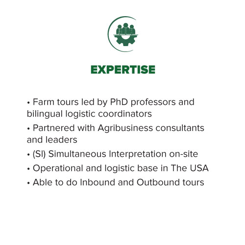• By means of a well-trained multidisciplinary and engaged team, your farm tour project starts to ” take o “, when our sta starts the alignment of ideas, dates, focus of the trip and the company’s needs.
